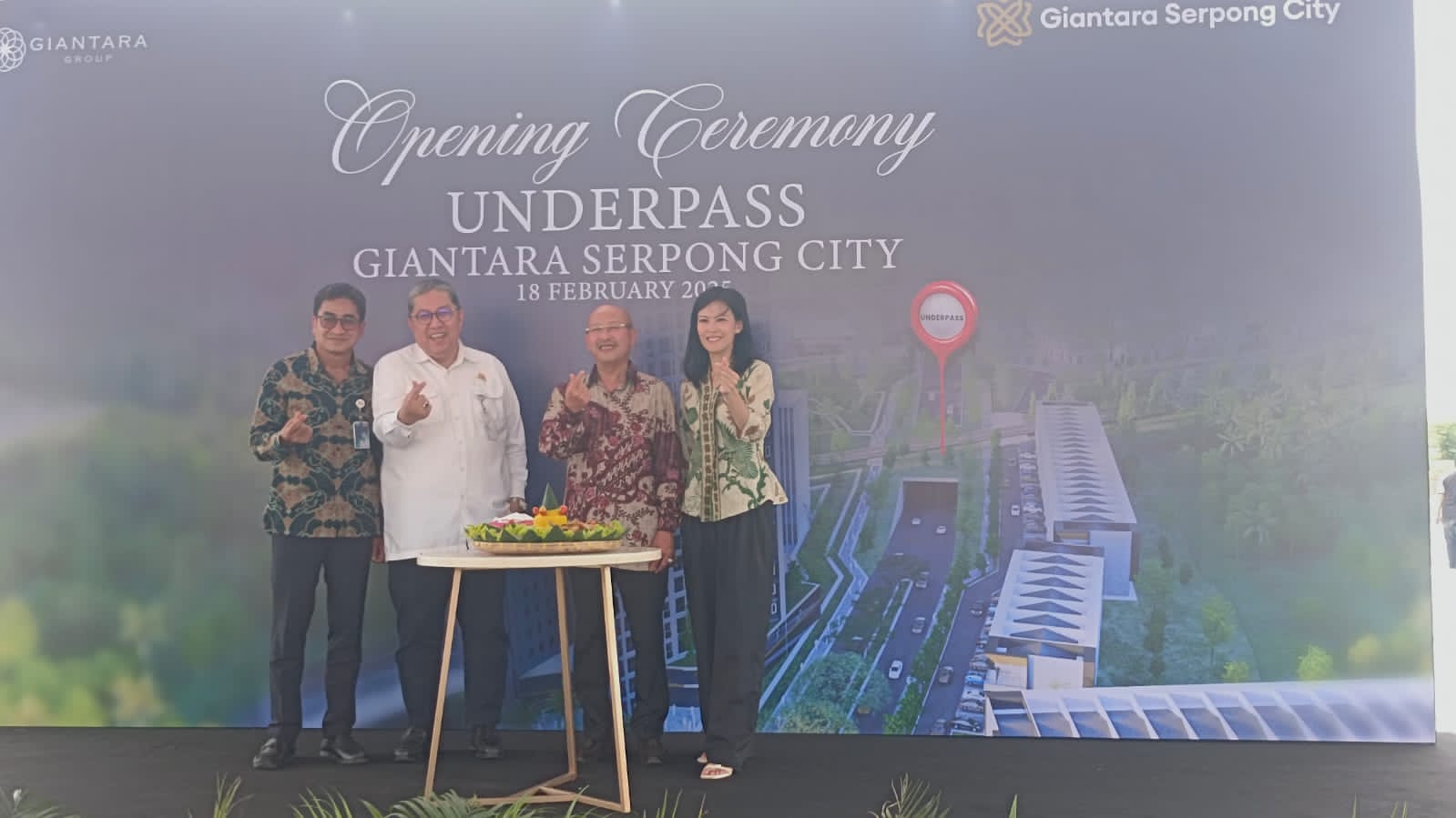 Underpass Giantara Serpong City, yang telah dibangun selama enam bulan terakhir, secara resmi mulai beroperasi pada hari Selasa (18/02). Peresmian Underpass Giantara Serpong City ini dihadiri oleh sejumlah pejabat Kementerian, BUMN dan pimpinan dari perangkat daerah setempat, dan diresmikan langsung oleh Direktur Jendral Perkerataapian, Ir. Mohamad Risal Wasal, ATD, MM, IPM. Dengan panjang 350 meter dan lebar 20 meter, underpass ini dilengkapi dengan jalur pejalan kaki dan akan menjadi jantung kehidupan Giantara Serpong City, karena terkoneksi dengan jalan provinsi, Jl Raya Cisauk - Kadusirung.